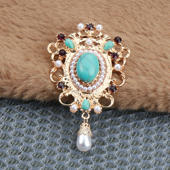 دبوس نسائي على طراز جديد من حجر الراين بروش من الفيروز الباروك الملون لصدر الكنوز