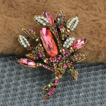 Retro Imitation Crystal Glass Brooch French Rhinestone Flower Badge Men's and Women's Suits Costumes Banquet Pins